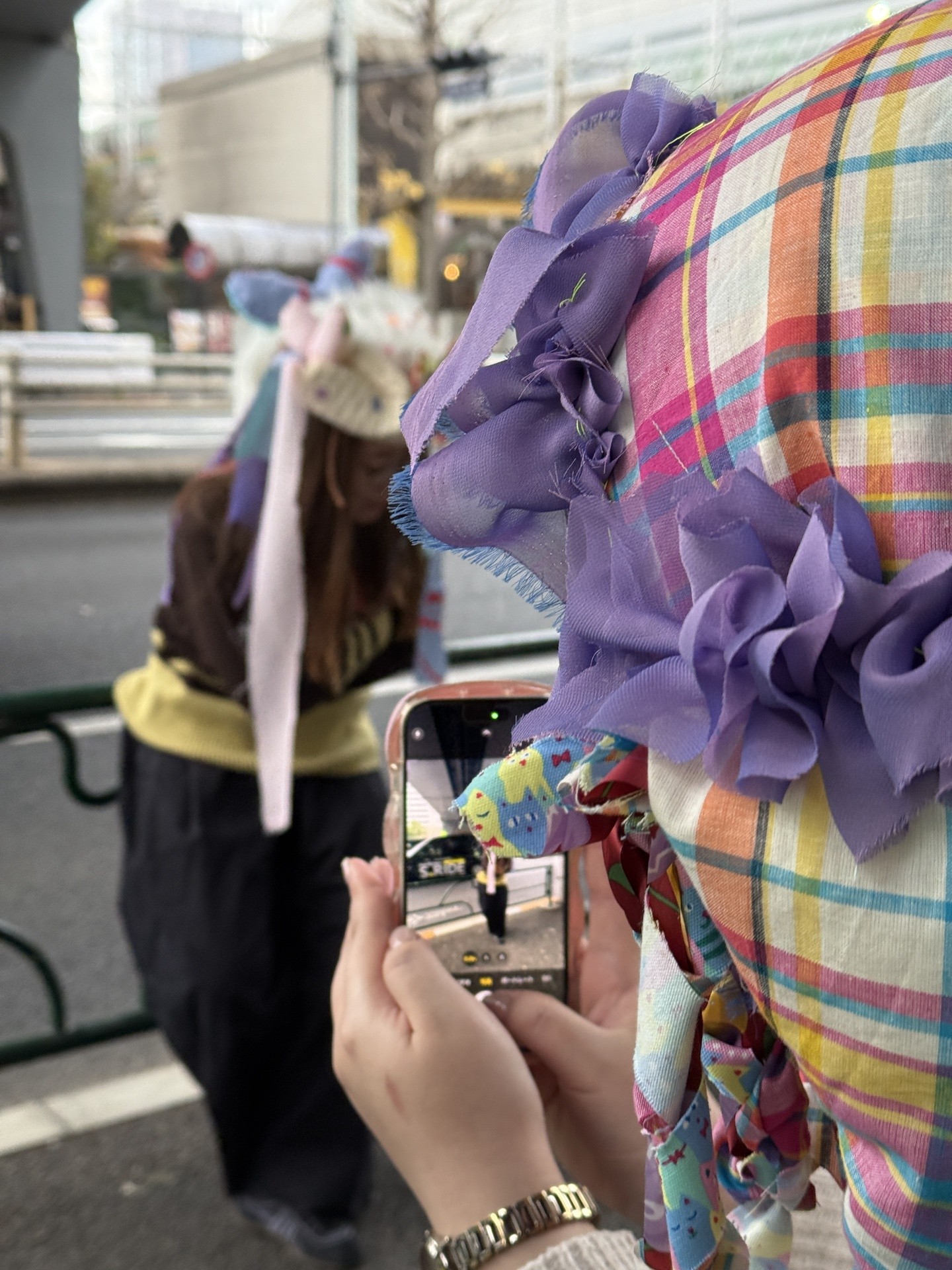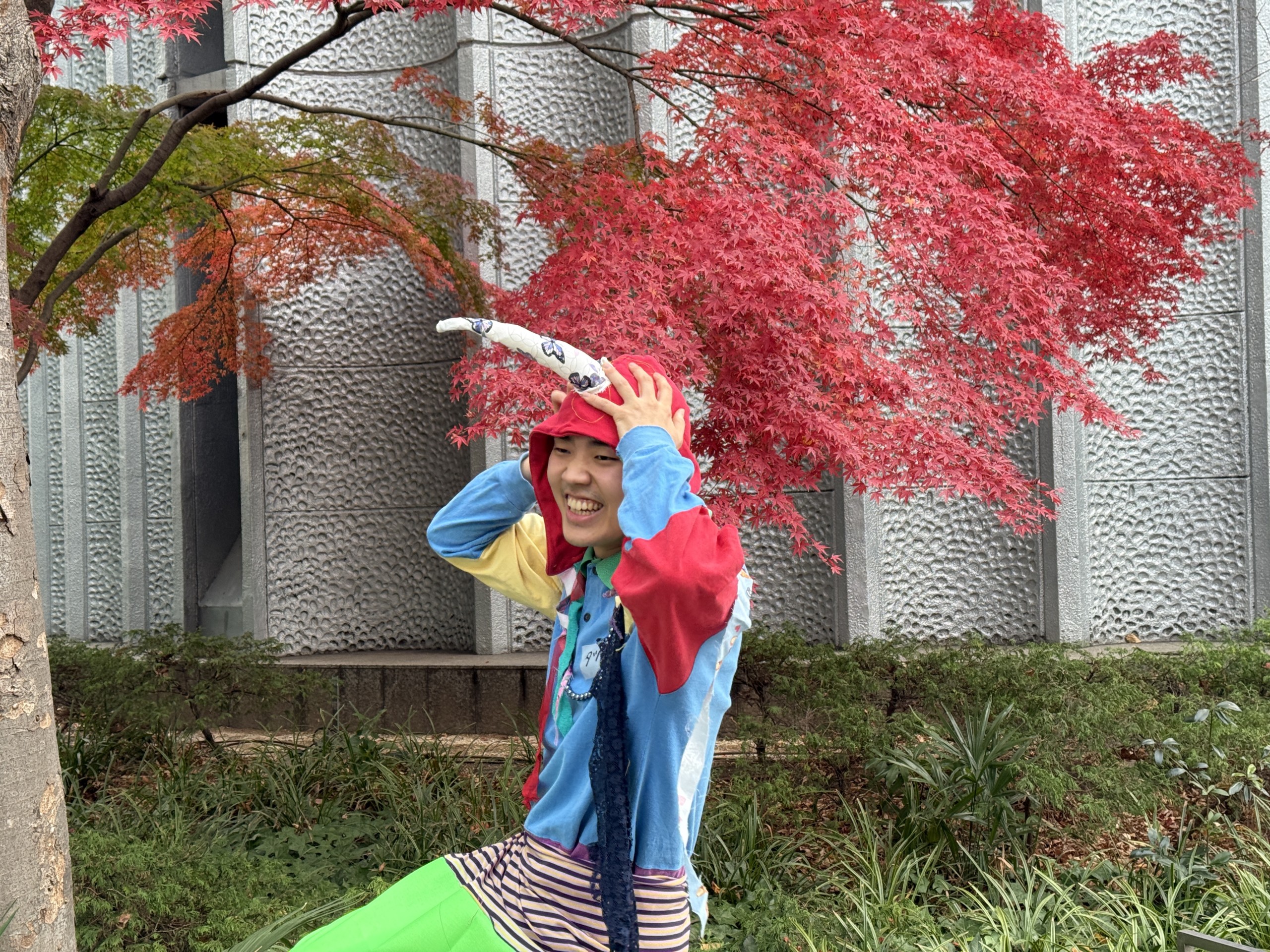 外で感じる不安をカラフルな服で乗り越え、手作りの服で自身の内面を表現しているというタツルハタヤマさん。そんなタツルさんによる、服や帽子などのアイテムを自由に彩り、身につけて、外へ繰り出すプログラムが開催された。