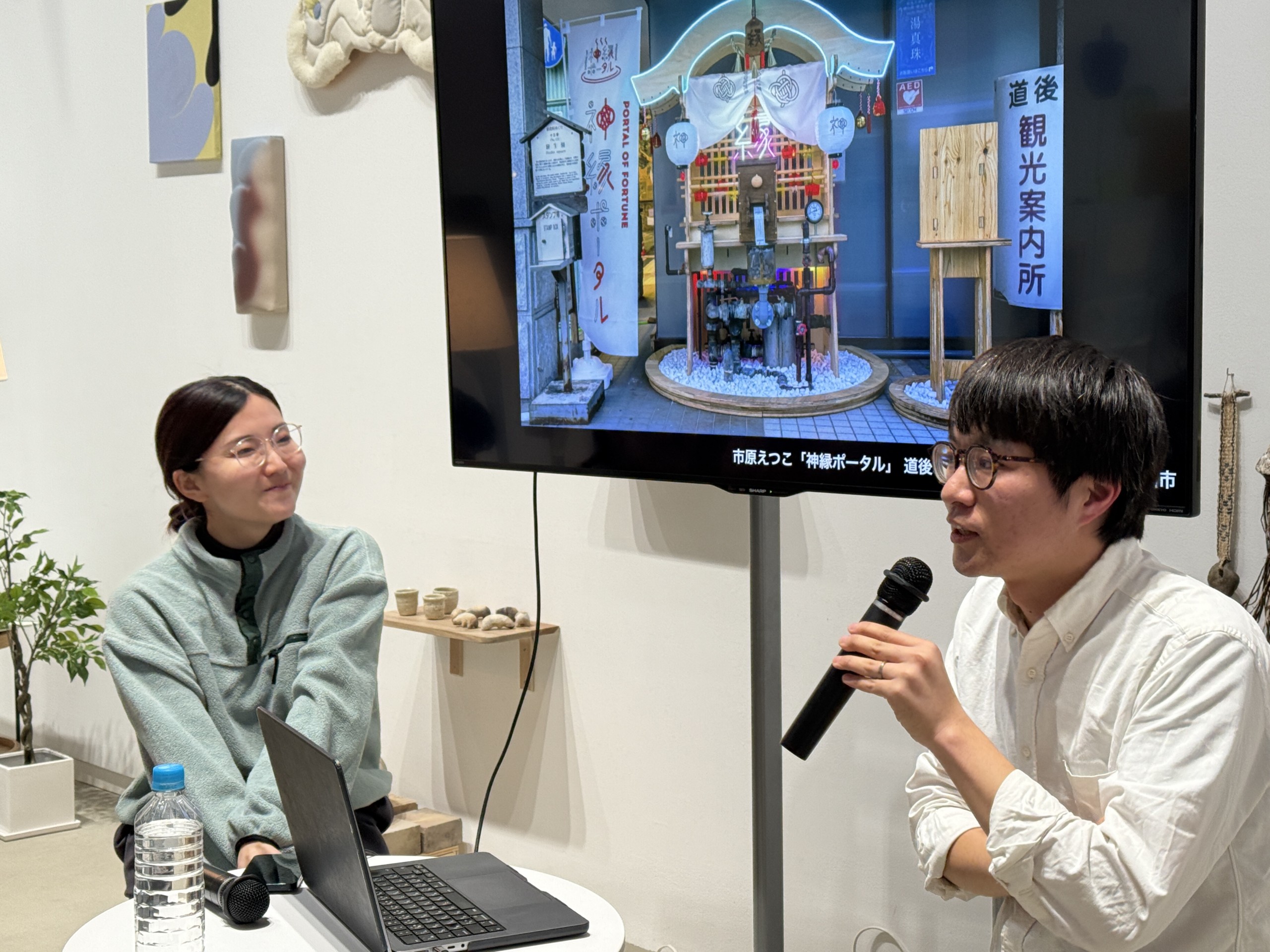 本展キュレーターの池田佳穂さんと、建築家で、2023年の第1回から3年連続でバグスクールの会場設計を担当する内海皓平さんとのトークイベントが開催された。