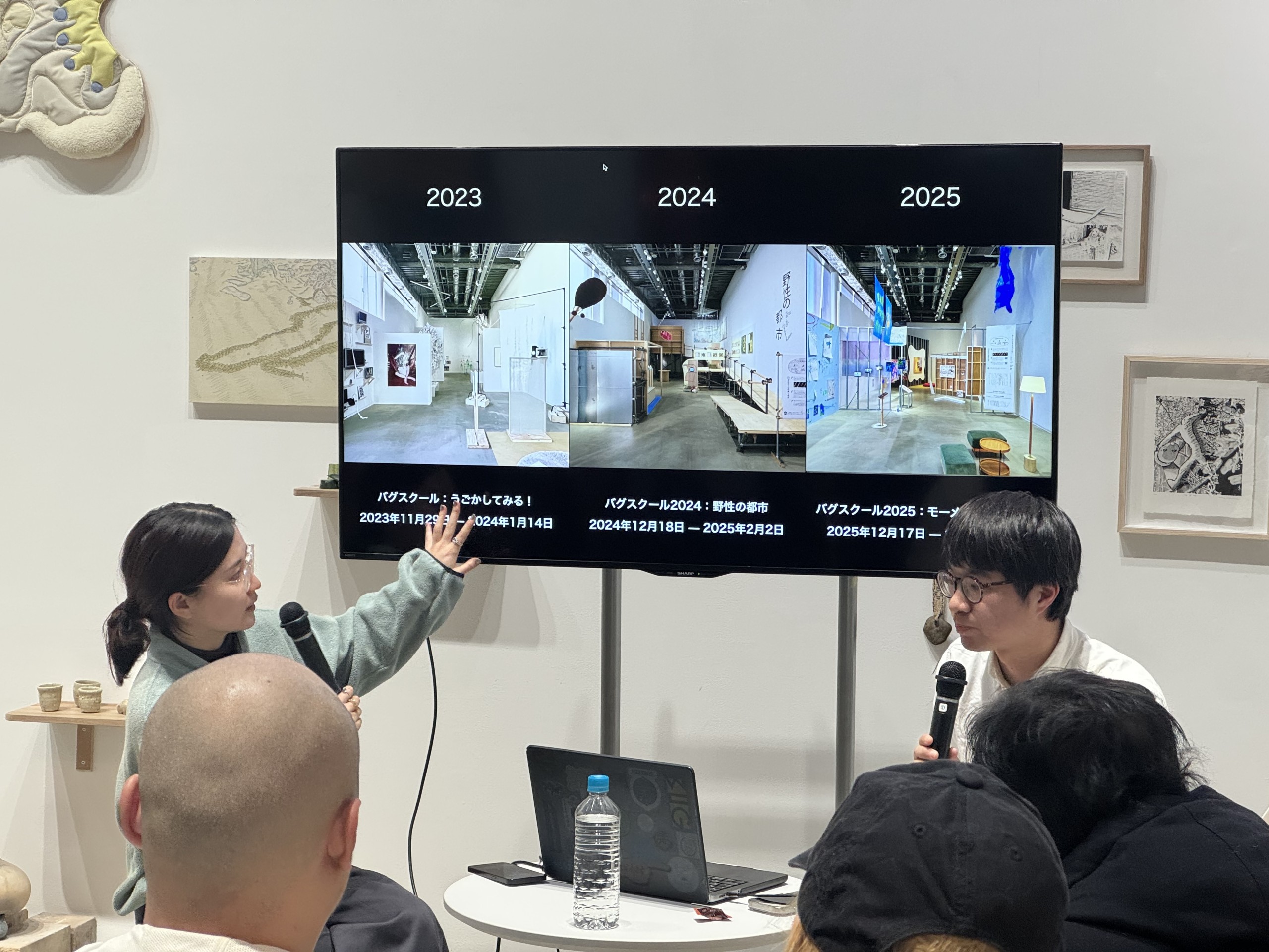 異なる立場にいながら想いは共有する2人の言葉をたっぷりと伺うことができ、また活発な質疑応答もあって、より深くバグスクールを楽しめるようになること間違いなしの、大充実のトークとなった。(本展運営アシスタント:山下港)