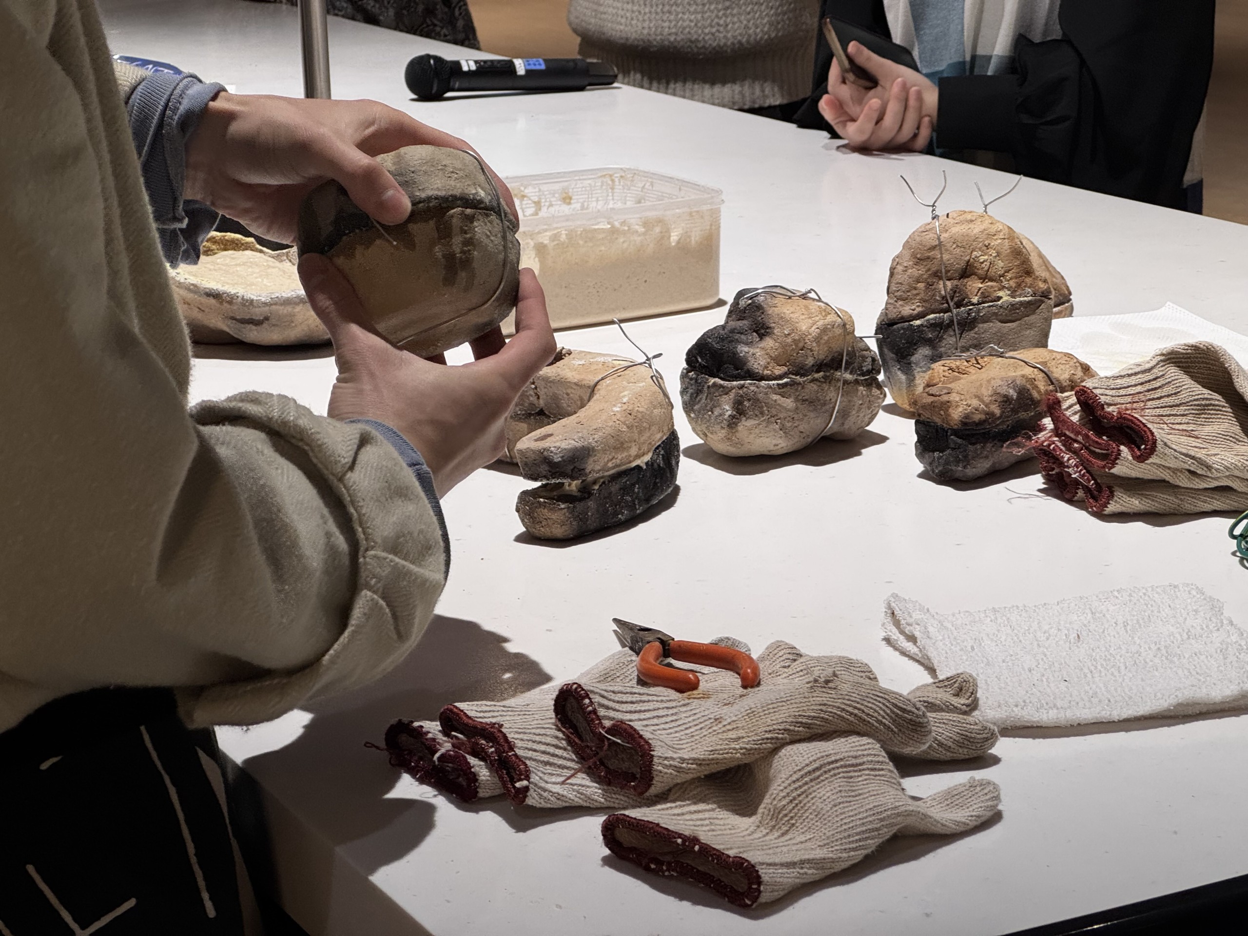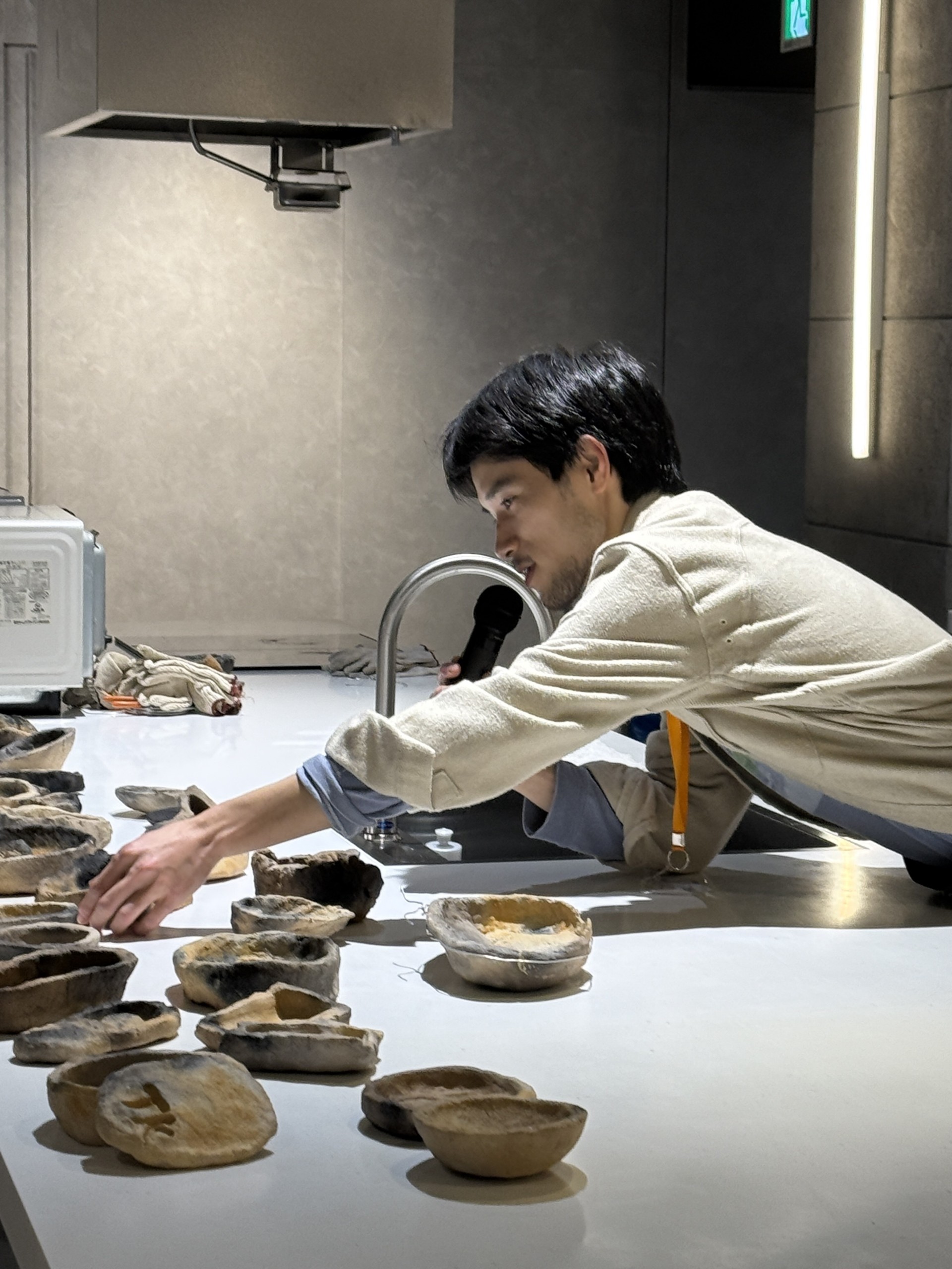 型を取った粘土を一つ一つ丁寧に整え、自分のアトリエで焼き、みんなに美味しいパンを食べてもらいたいと動き回る坂本さんの姿が目に焼き付いている。作家の人となりを知れるのもプログラムの魅力の一つだ。きっと参加者はこの体験をきっかけに、食べることの喜びや楽しみはもちろんのこと、坂本森海さんという作家の作品を、また新しい視点から味わえるようになったに違いない。(本展運営アシスタント:山下港)