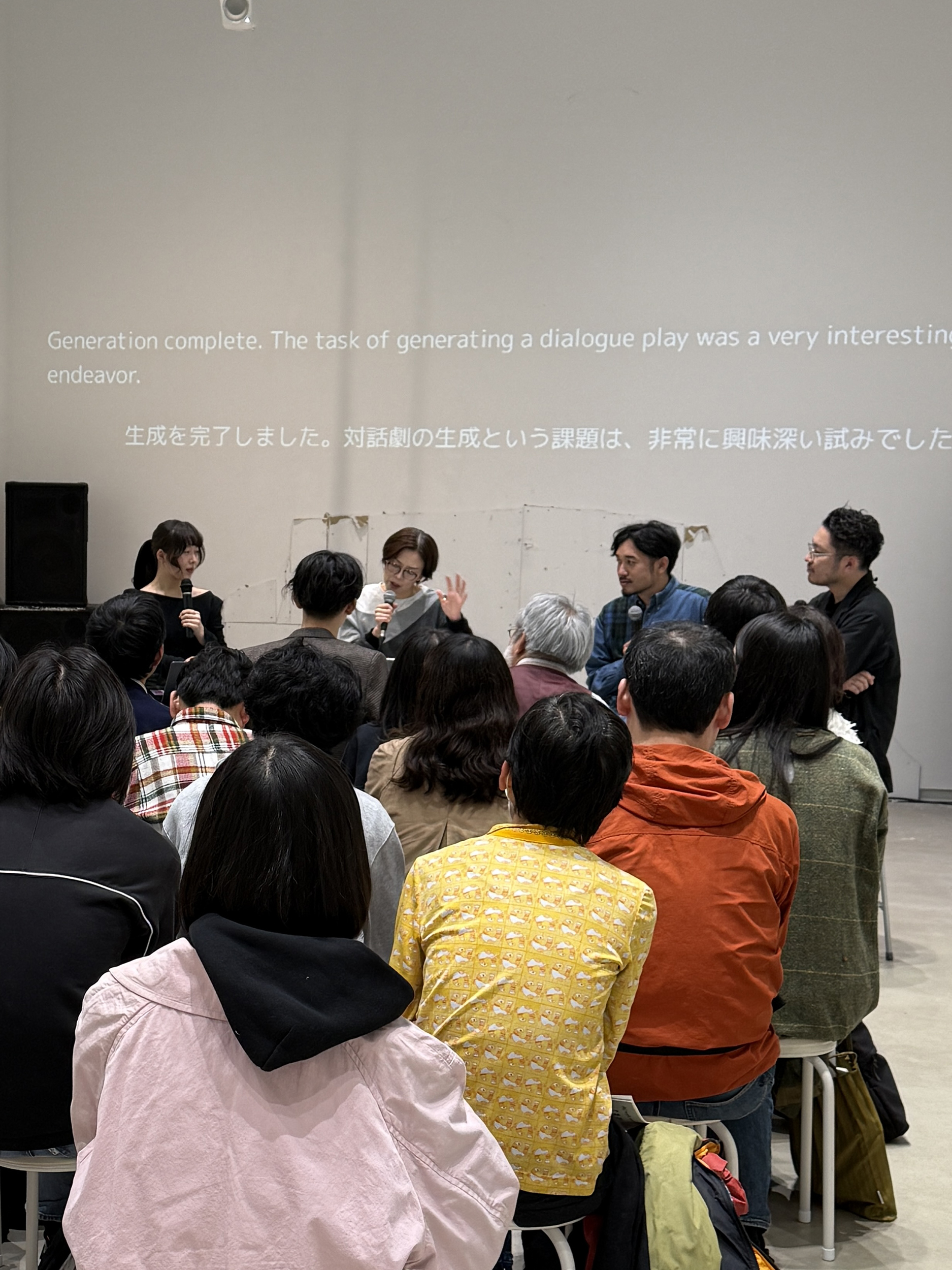 本展「浮遊する器官」では、ウクライナやガザの情勢、あるいは巨大テックカンパニーによる「デジタル封建制」などの議論を土台に、生成AI(Gemini)が演劇を創出する作品を展示しています。そこにはテクノロジーにまつわる倫理、人間の存在論、創造性のありかなど、いくつかの問いが含まれています。