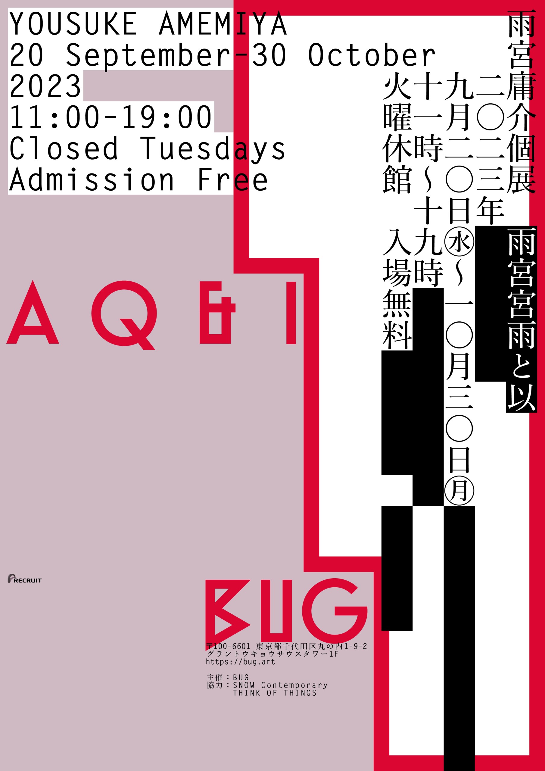 記念すべき1回目の展覧会として雨宮庸介個展「雨宮宮雨と以」(読み:あめみやきゅうとい)を開催いたします。雨宮は2000年の第15回グラフィックアート『ひとつぼ展』グランプリを受賞し、2011年には現公益財団法人江副記念リクルート財団の奨学金を受給してオランダ留学を実現するなど、キャリアを築く中で当社が度々バックアップしてきたアーティストです。