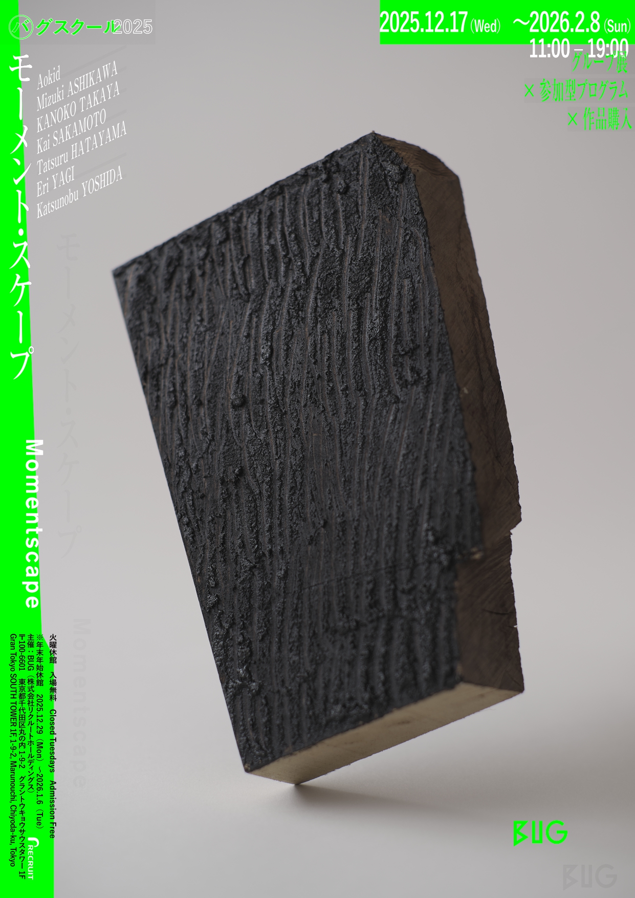 インディペンデント・キュレーターの池田佳穂をゲストキュレーターに迎え、2025年12月17日(水)より、「バグスクール2025:モーメント・スケープ」を開催します。本企画は、複数のアーティストを一挙に紹介する場として、アーティスト7名が小展示と多様なプログラムを実施します。アーティストの思考や作品に触れる機会を創出することで、アートセンターの可能性を広げることを目指しています。これまでアートに触れる機会の無かった社会人や学生など、様々な方々にも楽しんでいただける学び場です。