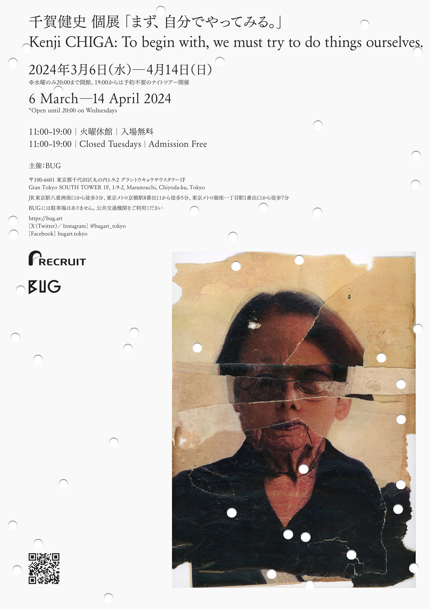2024年3月6日(水)より、千賀健史個展「まず、自分でやってみる。」を開催します。本企画はBUGの活動方針の一つである“キャリアの支援*”に基づき、更なる発展を目指すアーティストに対し、その足がかりとなることを目的とした展覧会です。