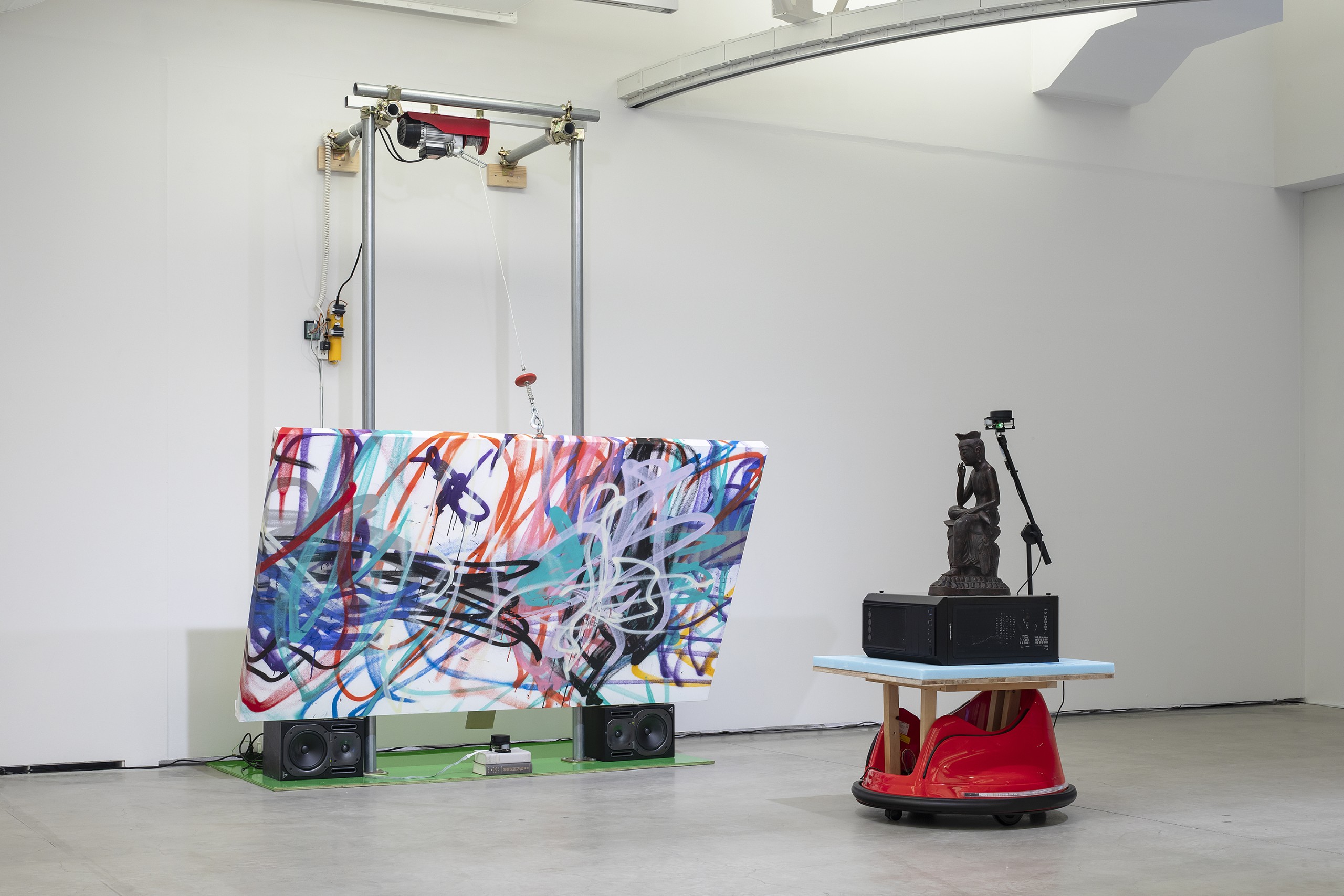 やんツーはこれまで、AIやセグウェイといったテクノロジーを用いた作品を発表しながら、進歩主義や資本主義に対して批判的なまなざしを投げかけてきました。また、これらテクノロジーに関わる人間の身体性や主体性を捉え直すことも試みています。